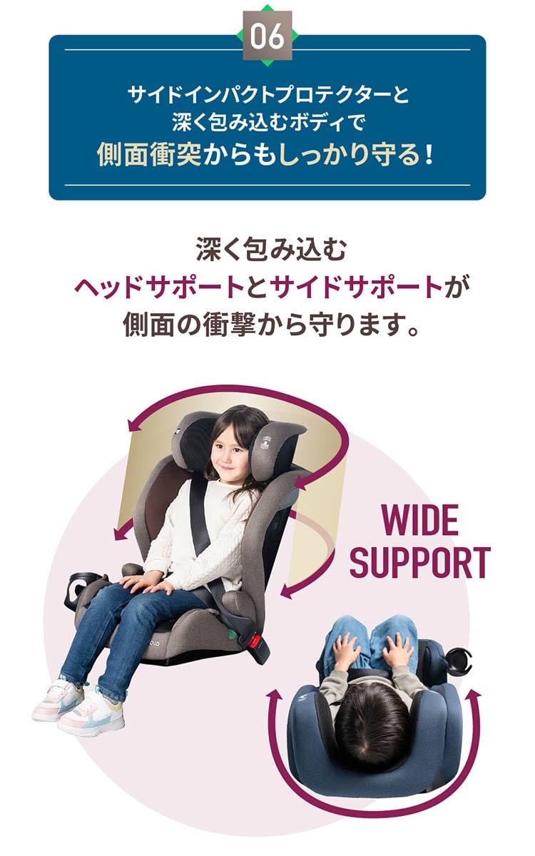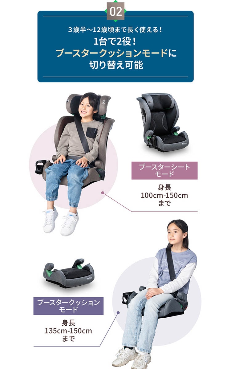 ●身長100cm~150cm(12歳頃)まで使用できるジュニアシート。