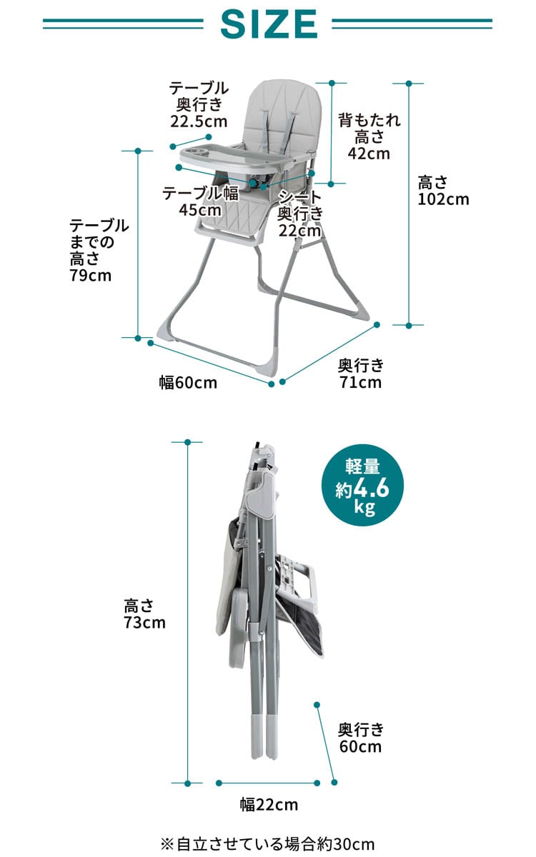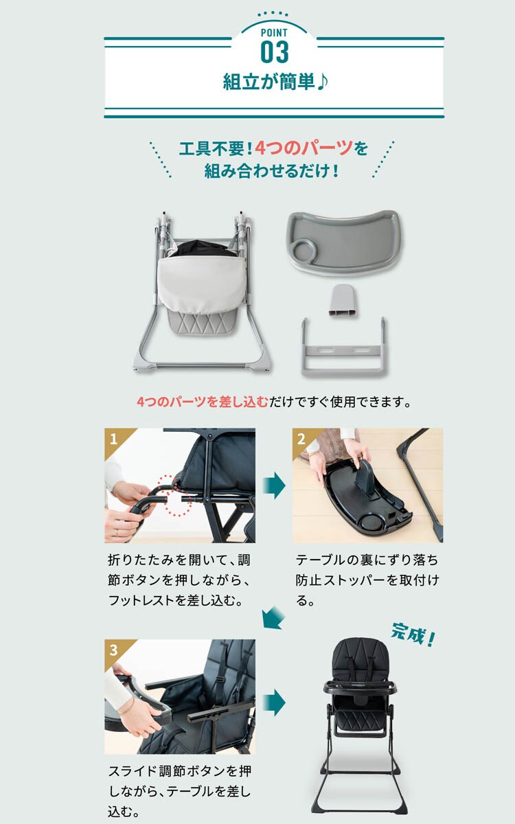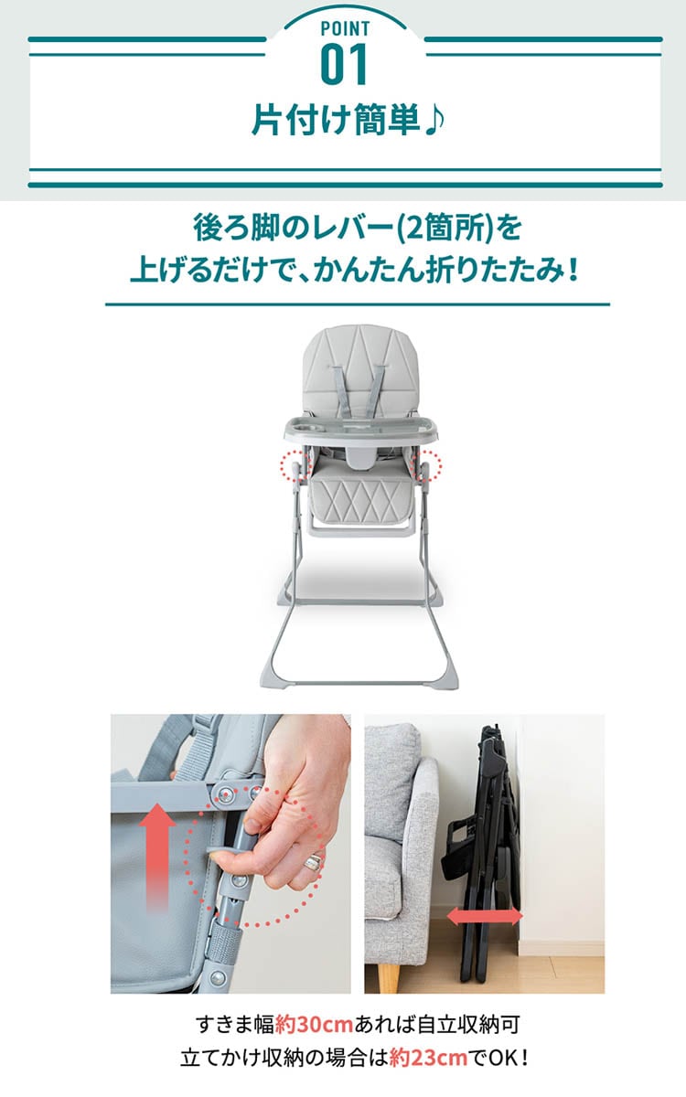 【自立式折りたたみベビーハイチェアS-1 グレーの商品詳細】