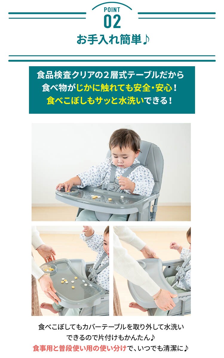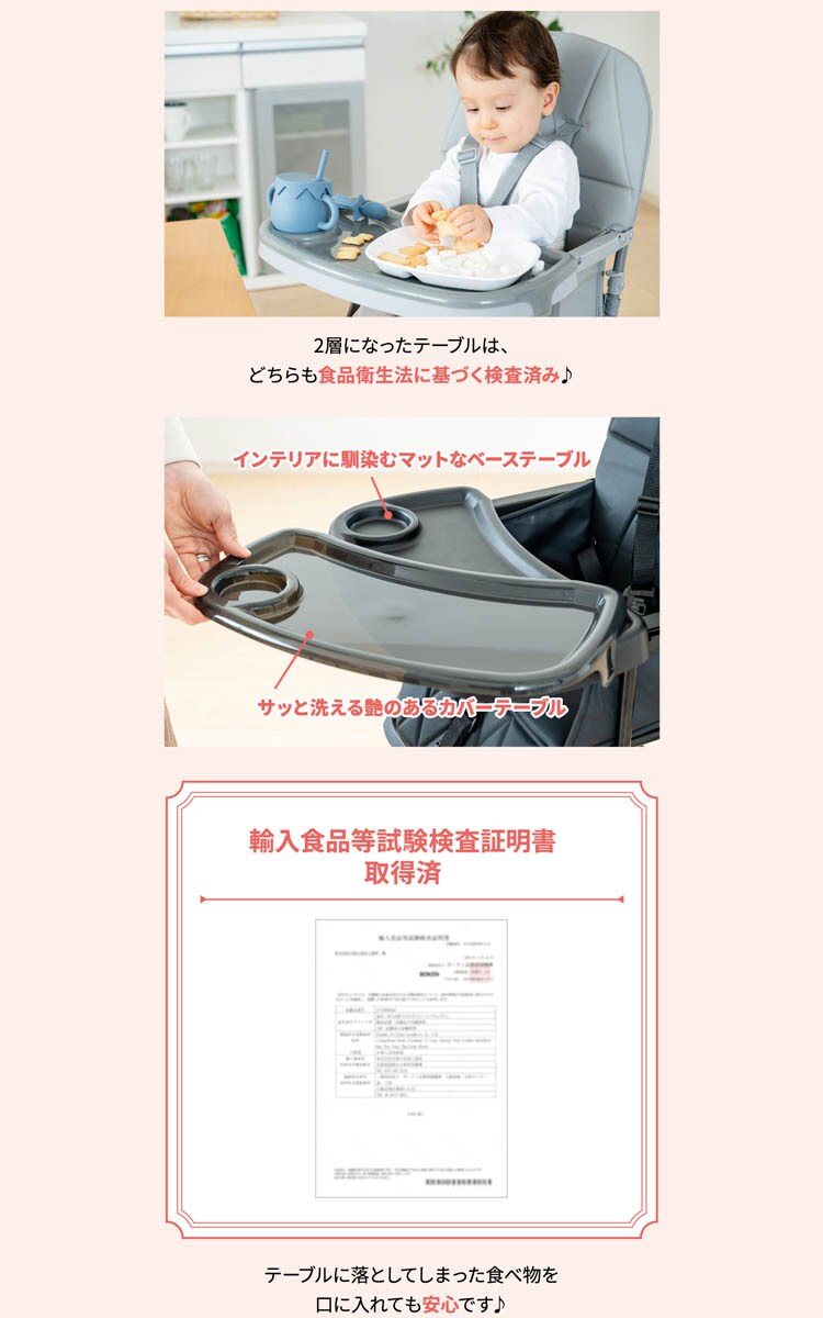 ●6ケ月~36ケ月頃まで使用できるベビーハイチェア。