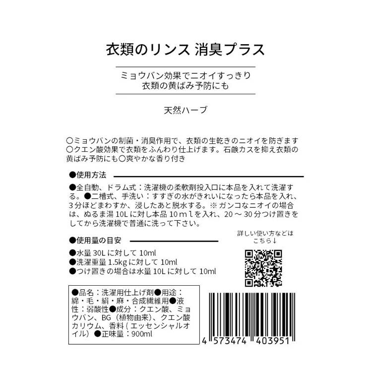 衣類のリンス消臭プラス 天然ハーブ エコパック (900ml)