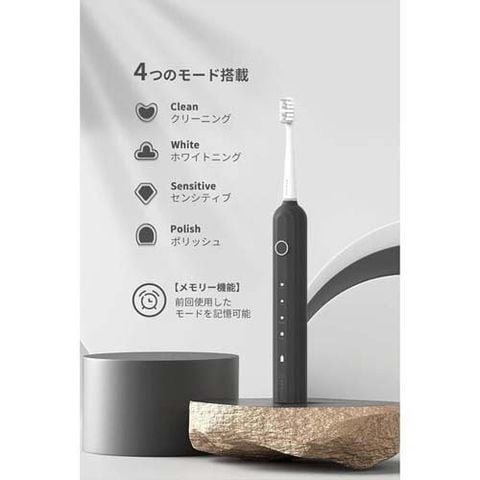 | ★サイズ(約):W28×H250×D28mm ★重量(約):132g ★連続使用時間:180日間 ※1日2回、各2分間使用する場合 ★フル充電までのかかる時間:約4時間 ★充電方法:付属のUSB-typeCからの充電となります。(別途お持ちのDC5V 1A充電器で使用) ★動作音:55dB未満 ★防水性能:IPX7 ★ブラシヘッド:デュポン社製の柔らかく高密度なブラシ |