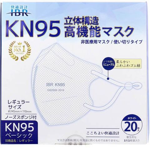 KN95ベーシック 立体構造高機能マスク 個別包装 レギュラーサイズ ホワイト (20枚入)