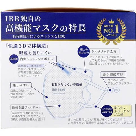 KN95ベーシック 立体構造高機能マスク 個別包装 レギュラーサイズ ホワイト (20枚入)のレビュー