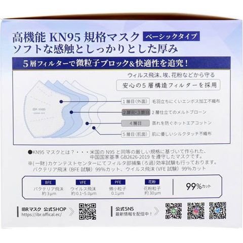 【KN95ベーシック 立体構造高機能マスク 個別包装 レギュラーサイズ ホワイトの商品詳細】