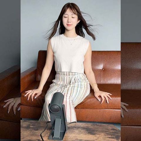・冷風ボタンを押すと、温風と冷風が切り替わります。風量ダイヤルを回してお好みの風量に調整します。