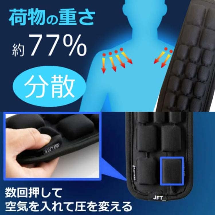 ●エア調整機能搭載で圧力分散により肩の負担を軽減。
