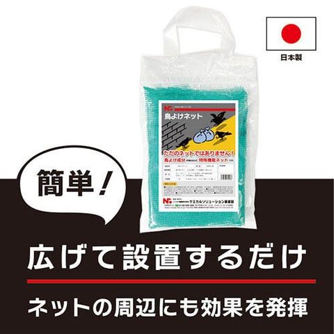 ●ネットとして物理的にトリを寄せ付けない他に、野鳥に不快感を与える特殊香料と辛味成分による刺激、紫外線吸収効果による野鳥の視界を迷彩することにより、設置周辺箇所にカラス、ハトを寄せ付けません。