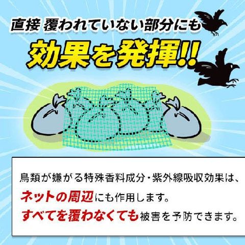 ・ゴミ全体や樹木全体を覆う必要はありません。ネットが覆われていない場所にも効果があります。(ただし、ネット周辺30cm程度)