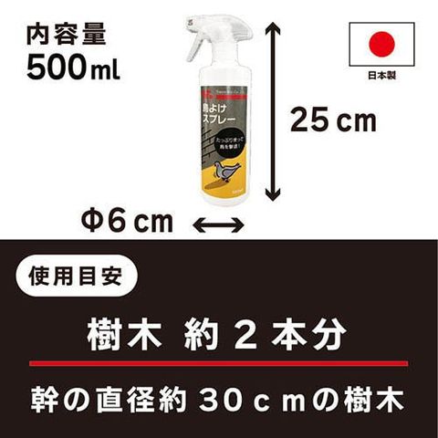 ●野鳥に不快感を与える香り成分・辛み成分により、スプレーした周辺に野鳥を寄せ付けない忌避剤です。