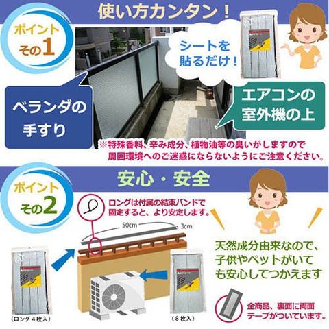 ●ベランダの柵、手すり、屋根、庇、など鳥が寄ってくる場所に貼るだけ。