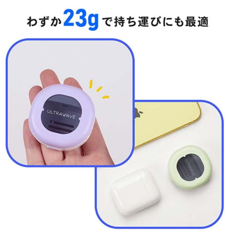 | ・素材:ABS+PC+アルミニウム、ほか ・サイズ:50×50×20mm ・重量:22g ・UV波長:265~315nm ・除菌時間:3分自動タイマー ・バッテリー:リチウムポリマー電池120mAh ・付属品:本体、取説、専用充電ケーブル ・保証期間:3ヶ月 ・生産国:中国 |