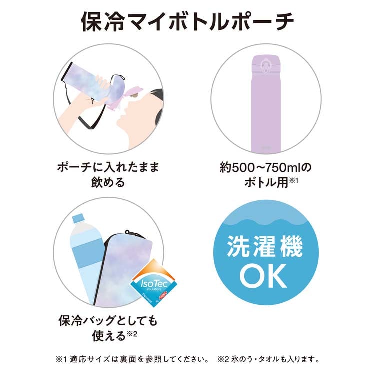 | 本体寸法(約):幅8.5×奥行8.5×高さ28cm 本体重量(約):100g 適応サイズ:約0.5~0.75Lサイズ 材質:外生地:ナイロン/内生地:PEVA/クッション(断熱材):発泡EVA |