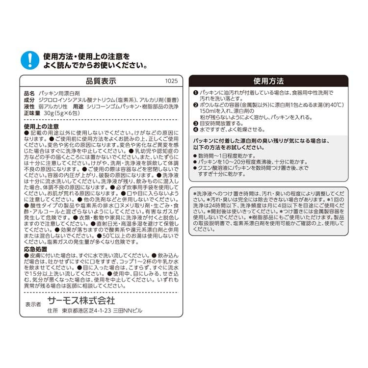 サーモス パッキン用塩素系漂白剤 APS-030 (5g×6包)