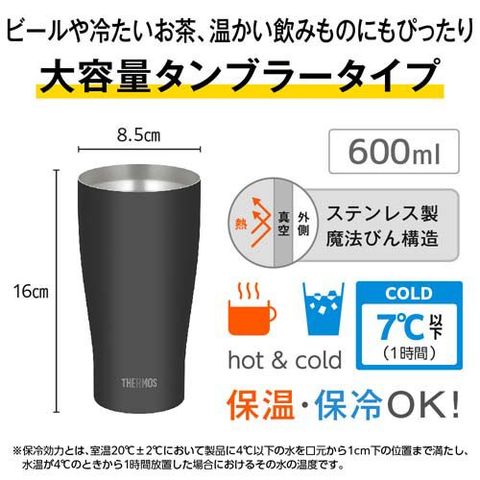 【サーモス 食洗機対応 真空断熱タンブラー 600ml マットブラック JDY-601C MTBKの商品詳細】