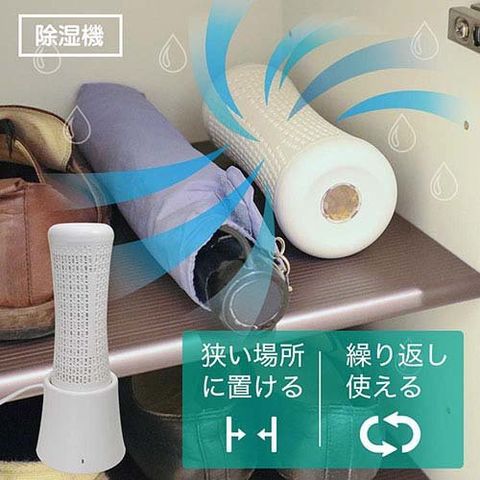 ●狭い場所でもしっかり除湿、しかも水分を吸い取った後、除湿剤を乾燥することで繰り返し使えます。