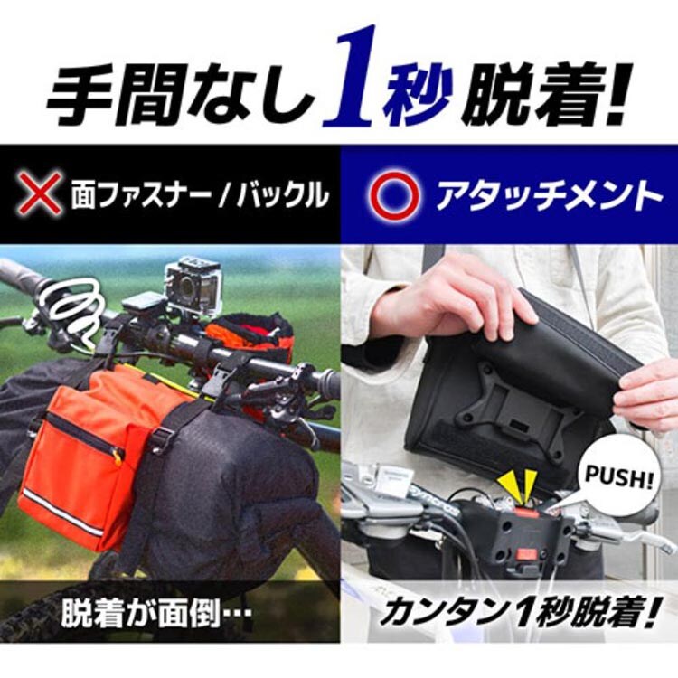 ●自転車用2wayフロントバッグ:カンタン手間無し、1秒で脱着できる自転車用フロントバッグ!スマホスタンドしても使用できるので、サイクリングにぴったりです。サッと取り付けてパッとまたがれる、快適な自転車生活をお届けいたします。