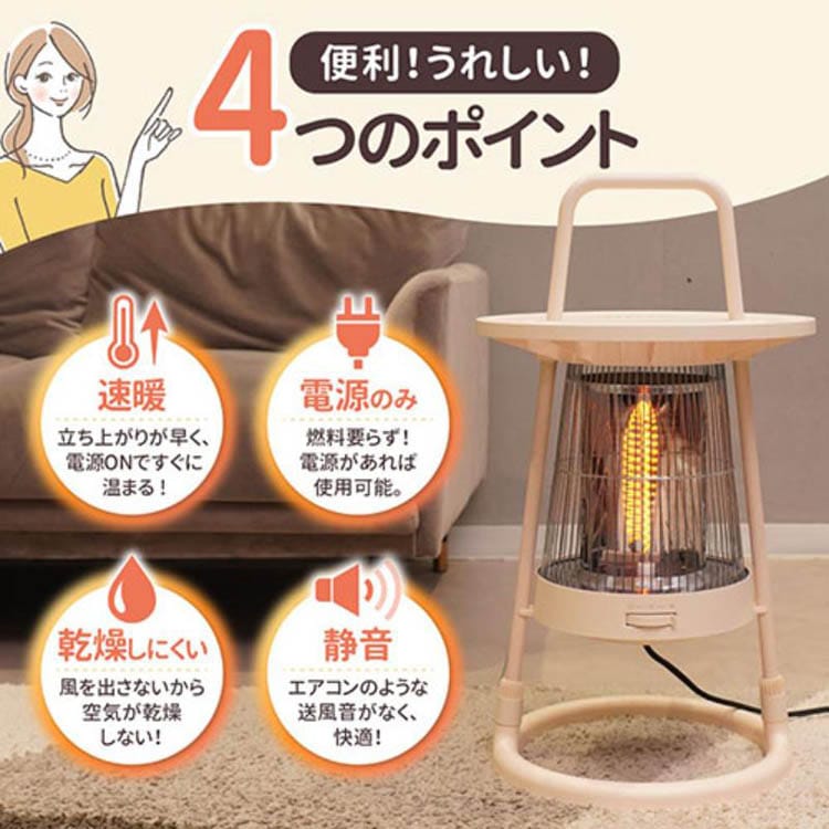 ●そんな時に便利なのが、電源ONですぐに温まり始める「ちょい置きできる360度カーボンヒーター」