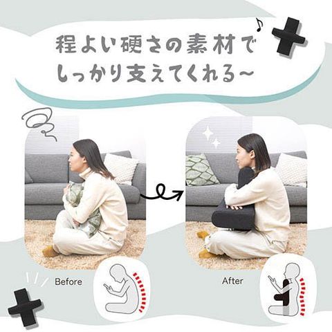 ●このクッションを抱きしめて! あごをのせて、姿勢をサポート! 腰も肩も首もらっくらく!
