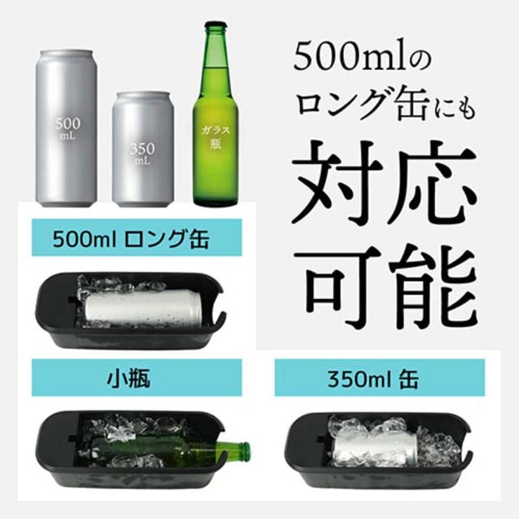 ●350ml缶しか対応していないものも多いですが、この「USBぐるぐる缶クーラー」は500mlのロング缶・小瓶にも対応しています!