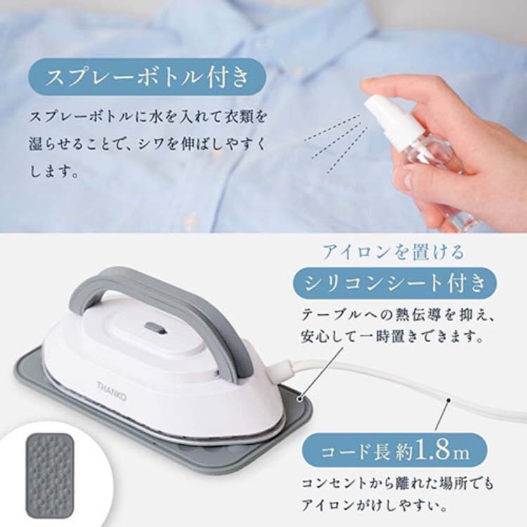 ●アイロンがけに便利なスプレーボトル・シリコンシートが付属。
