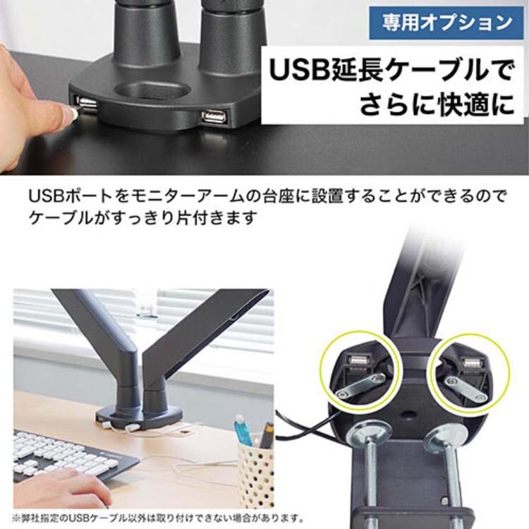 ●「モニターアームプレミアム」に設置できるUSB延長ケーブル2本セットとなります。