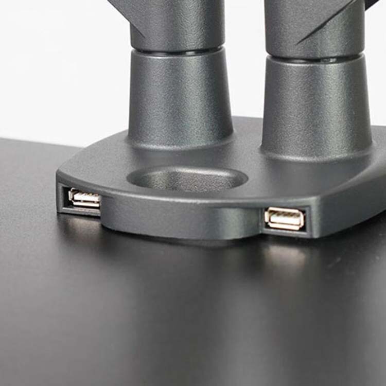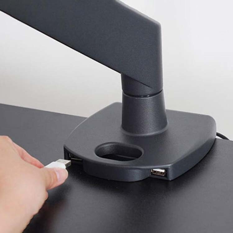 ●「モニターアームプレミアム」は、USB Aメスを2ポート設置できるので、デスク周りのUSB機器を接続可能。