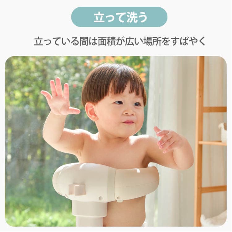 | ・サイズ(シャワーガード)・・・W45XD51XH47.7~58.2cm ・サイズ(バスチェア)・・・W25XD23.7XH21.9cm ・重量・・・3.1kg(バスチェア含む) ・材質・・・ABS、PP、TPE、シリコーン ・対象月齢・・・6~24か月 |