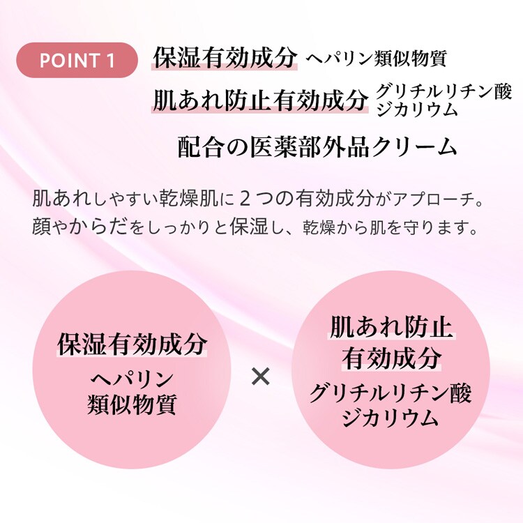 ●(気になるカサカサ・粉ふきに)保湿成分ヘパリン類似物質、肌あれ防止成分グリチルリチン酸ジカリウム配合の薬用保湿クリーム。