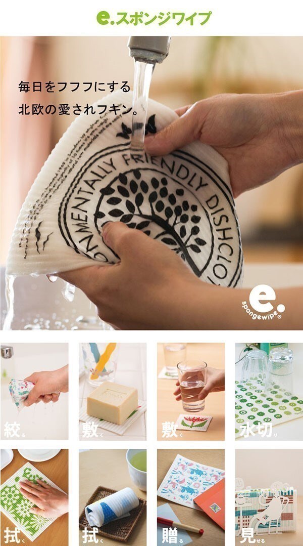 ●スウェーデンで定番のサスティナブル素材のセルロースふきん。