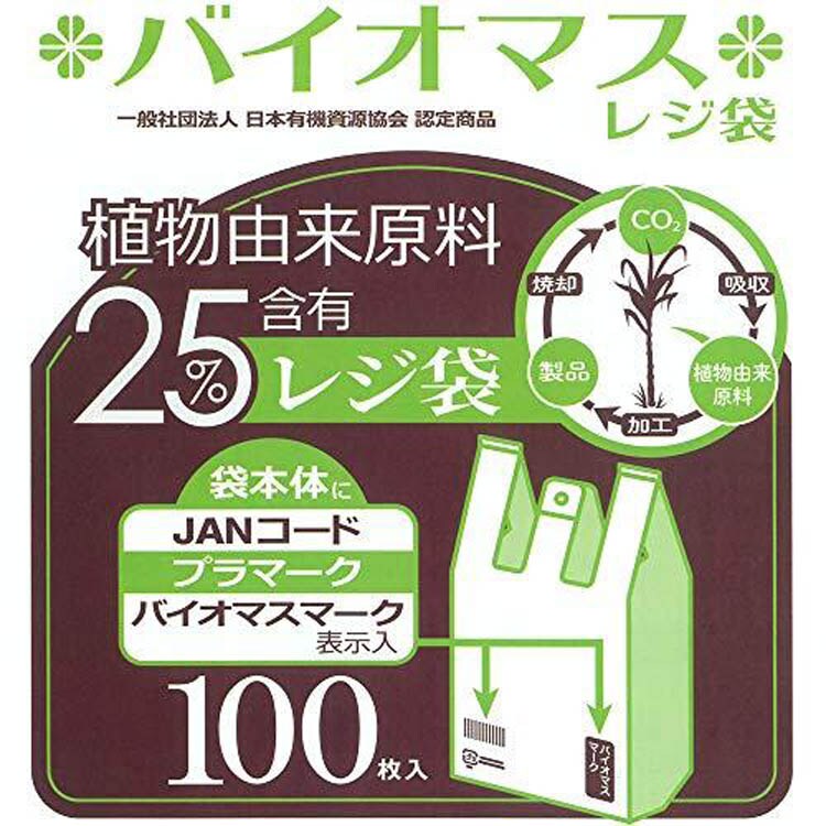 レジ袋 バイオマス25%配合 45号 半透明 TZ45 (100枚)