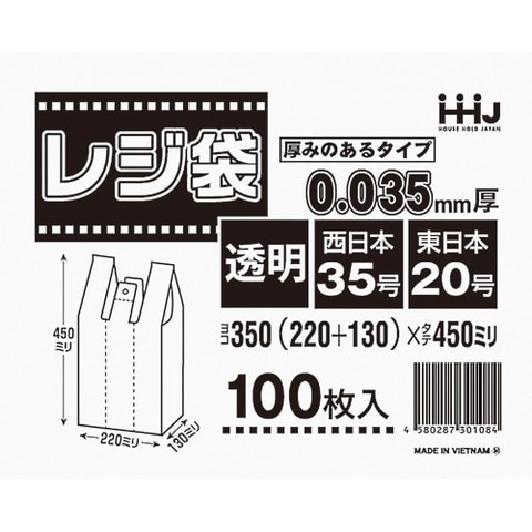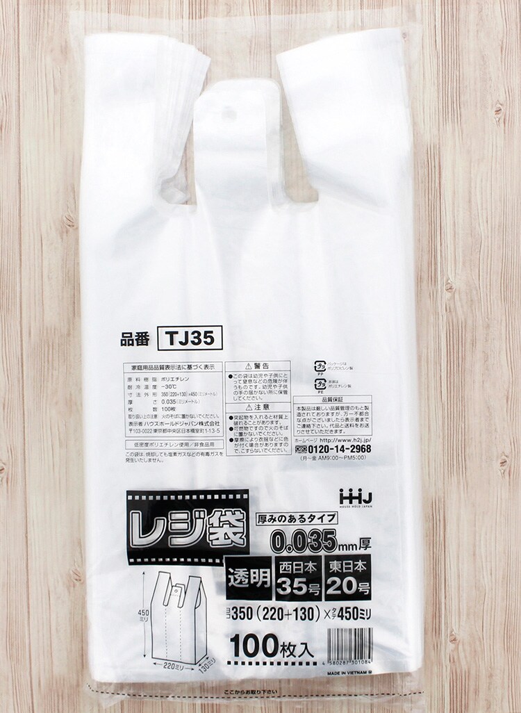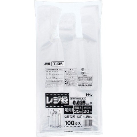 ポリ袋 取っ手付きレジ袋 厚手 透明 TJ35 (100枚入)