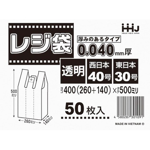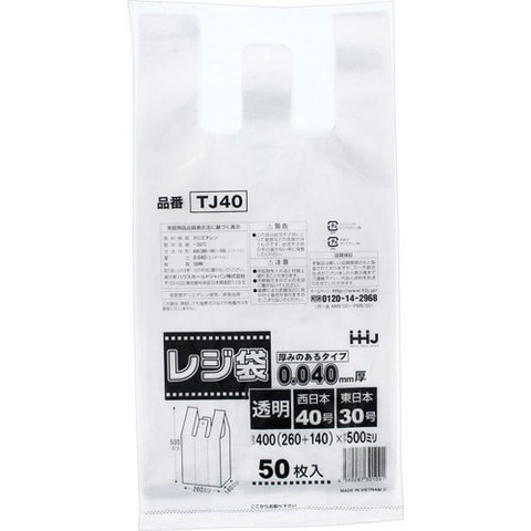 ポリ袋 取っ手付きレジ袋 厚手 透明 TJ40 (50枚入)
