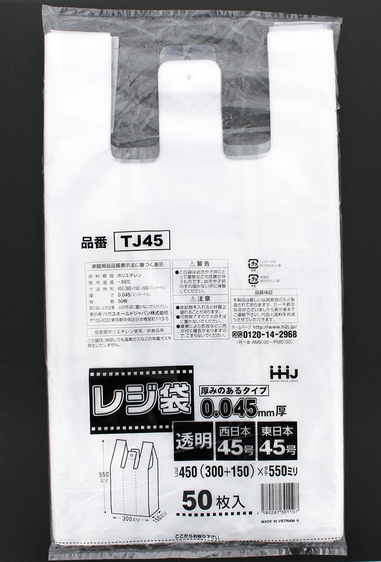 ポリ袋 取っ手付きレジ袋 厚手 透明 TJ45 (50枚入)