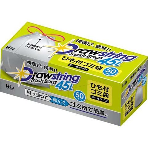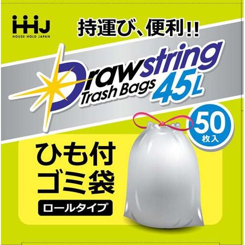 ひも付ごみ袋ロールタイプ 45L 白半透明 RD45 (50枚入)
