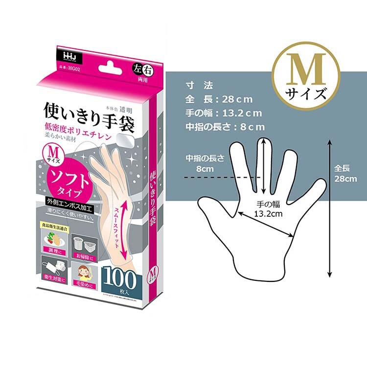 使いきり手袋 ソフトタイプ 透明 M HG02 (100枚入*2個)