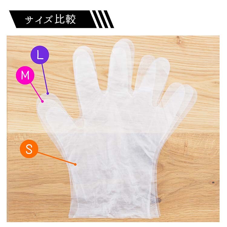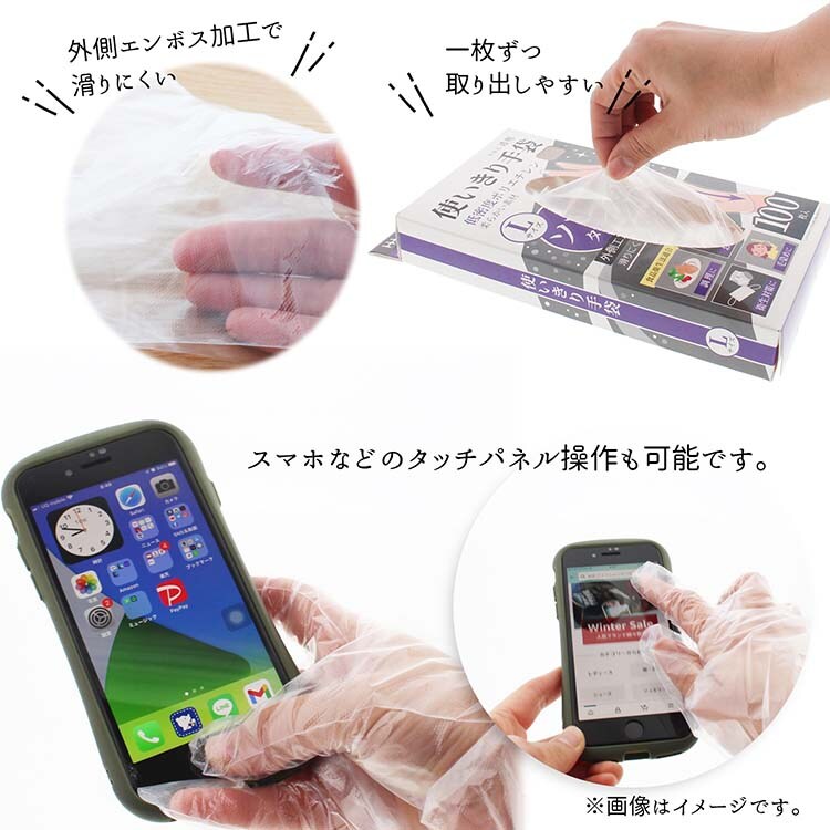 ●柔らかいポリエチレンを使用した使い捨て手袋。