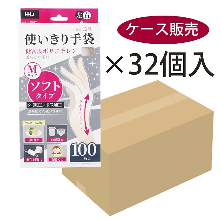 使いきり手袋 ソフトタイプ 透明 M HG02 (100枚入*32個)