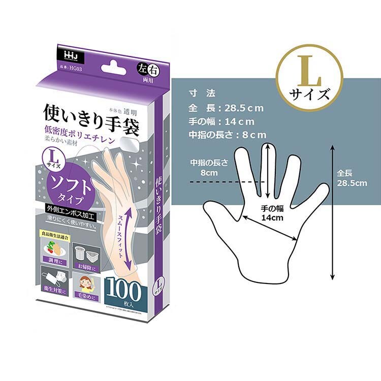 【使いきり手袋 ソフトタイプ 透明 L HG03の商品詳細】