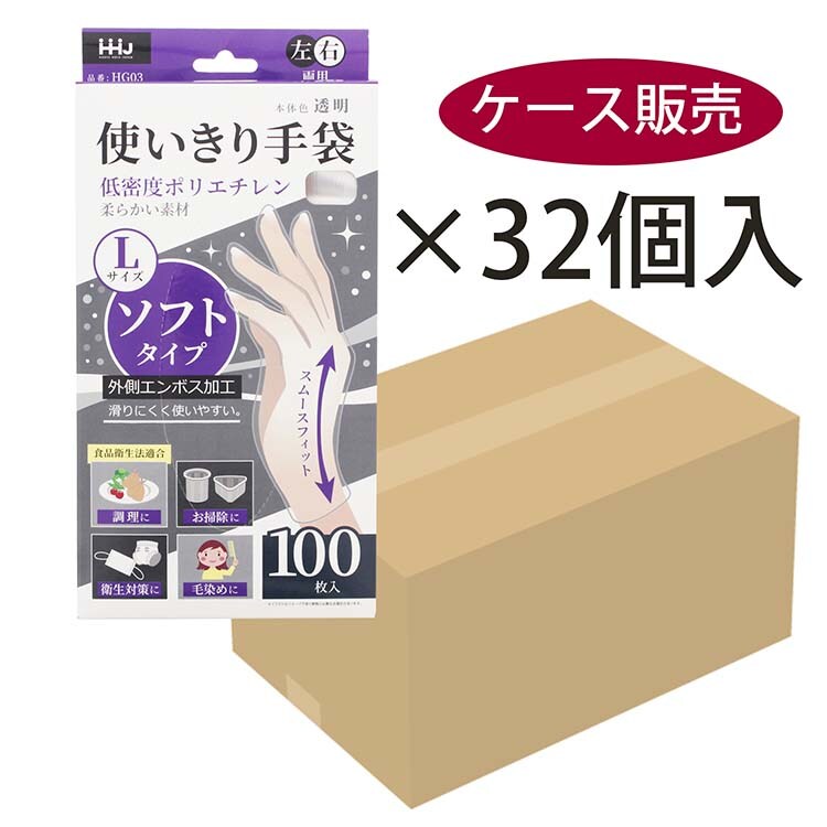 使いきり手袋 ソフトタイプ 透明 L HG03 (100枚入*32個)
