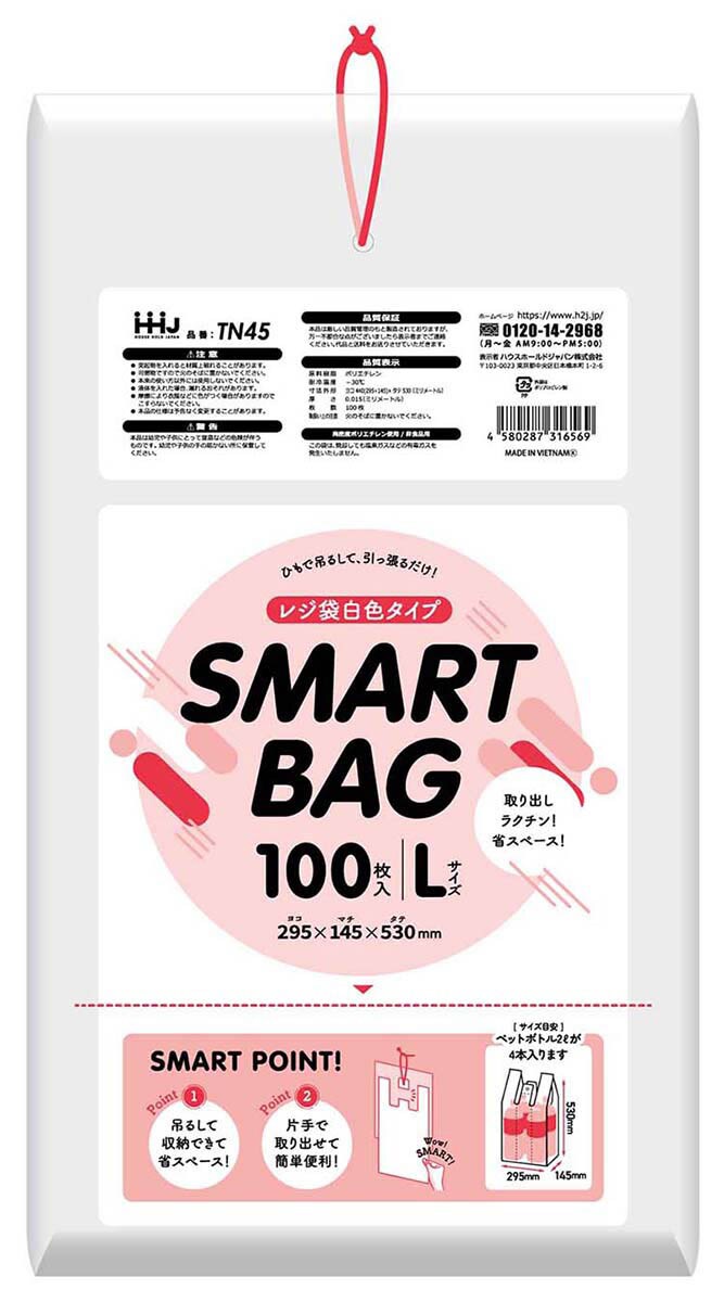 【レジ袋 ひも付き 取っ手付き 白 L TN45の商品詳細】