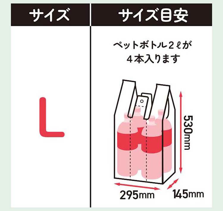 | 本体サイズ:(約)29.5×マチ14.5×53cm、厚み:0.0015cm(1枚あたり) 本体重量:約583g(1冊あたり) 素材・材質:高密度ポリエチレン 原産国:ベトナム 耐冷温度:マイナス30度 カラー:ホワイト |