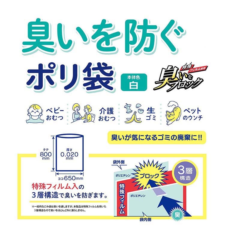 ●臭いが気になるごみの廃棄に便利なポリ袋です。