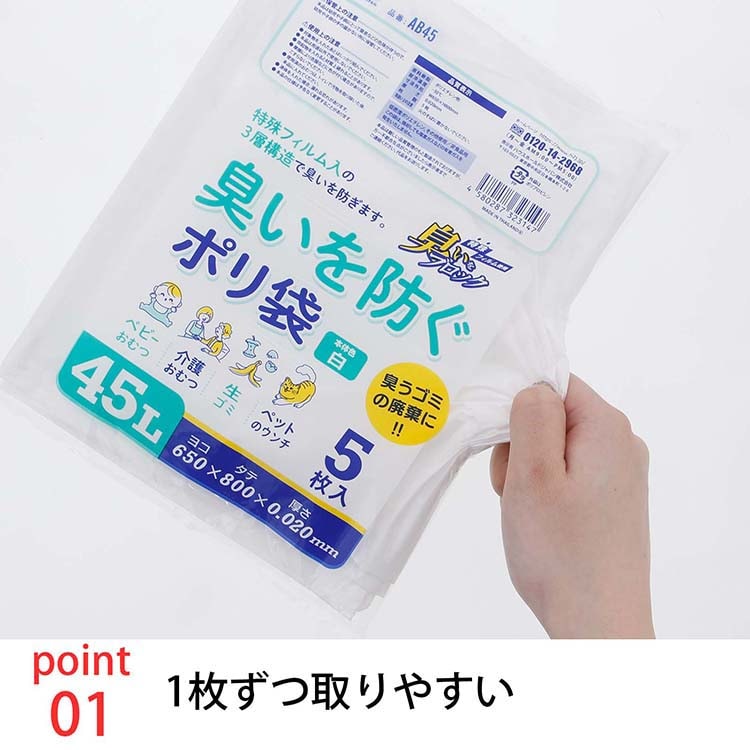 【ゴミ袋 臭いを防ぐ ポリ袋 45L 白 AB45の商品詳細】