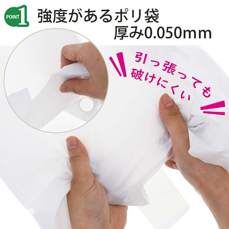 ●白色で中身が見えにくく、十分な厚みで破れにくいのが特長です。