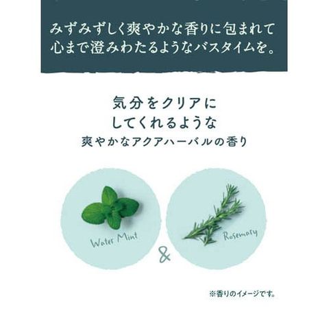●爽やかな「ウォーターミント&ローズマリーの香り」ローズマリーのエッセンシャルオイルとウォーターミントから抽出した天然植物成分を配合。みずみずしく爽やかな香りに包まれながら、ゆったり心満たされるバスタイムを。