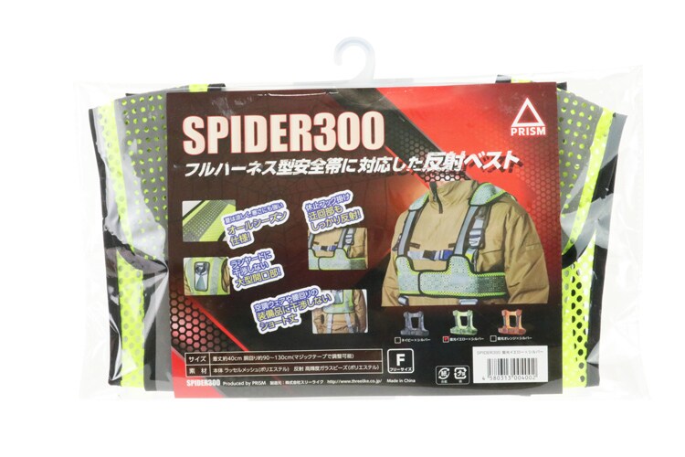 スリーライク フルハーネス対応反射ベスト SPIDER300 蛍光イエロー×シルバー Fサイズ (1着)