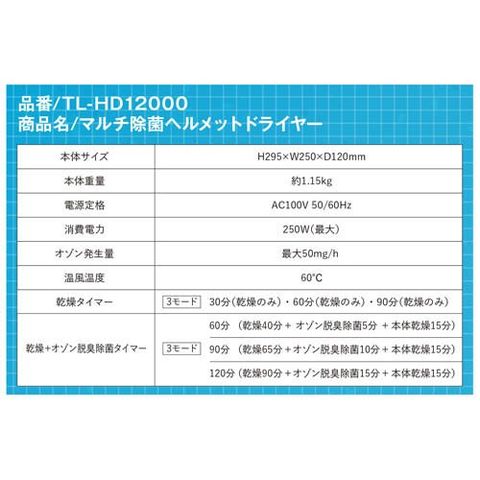 【スリーライク マルチ除菌ヘルメットドライヤー TL-HD12000の商品詳細】
