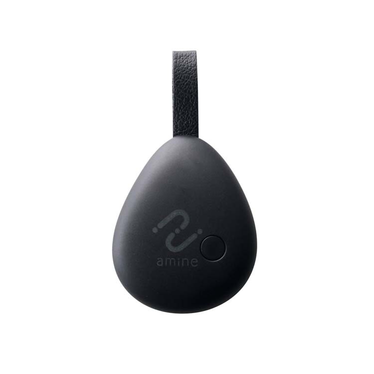 ●「amine (あみね)」それは、あなたの大切なものを探すアイテム。ロゴマークがあらわすように、[自分][仲間][自分のモノ]の3つの点がネットワークで繋がり、失ったあなたのモノに導きます。