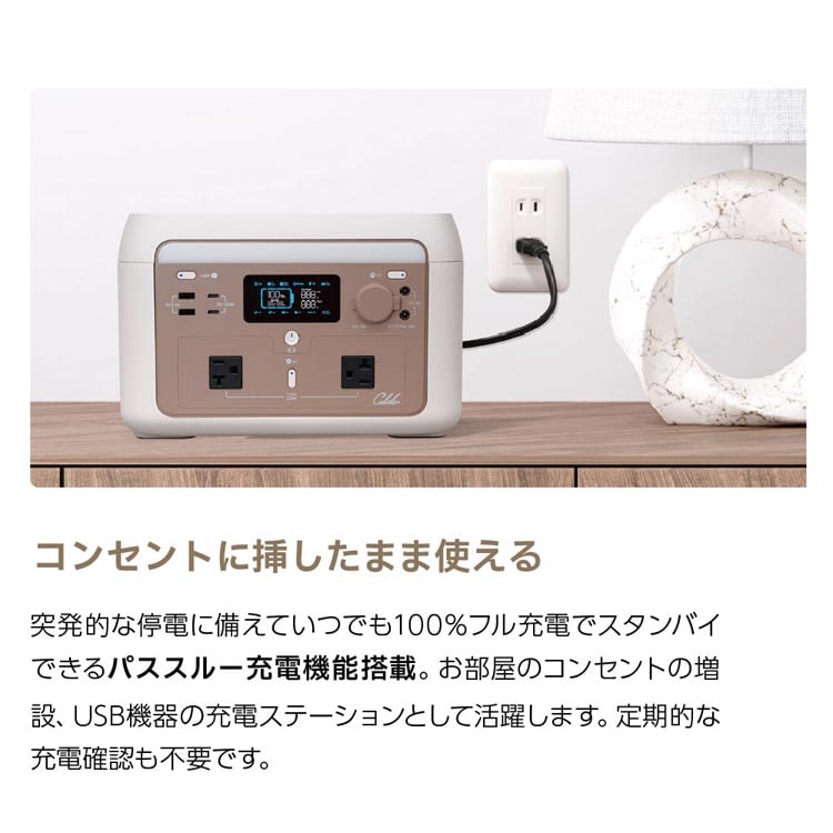●突発的な停電に備えていつでも100%フル充電でスタンバイできるパススルー充電機能搭載
