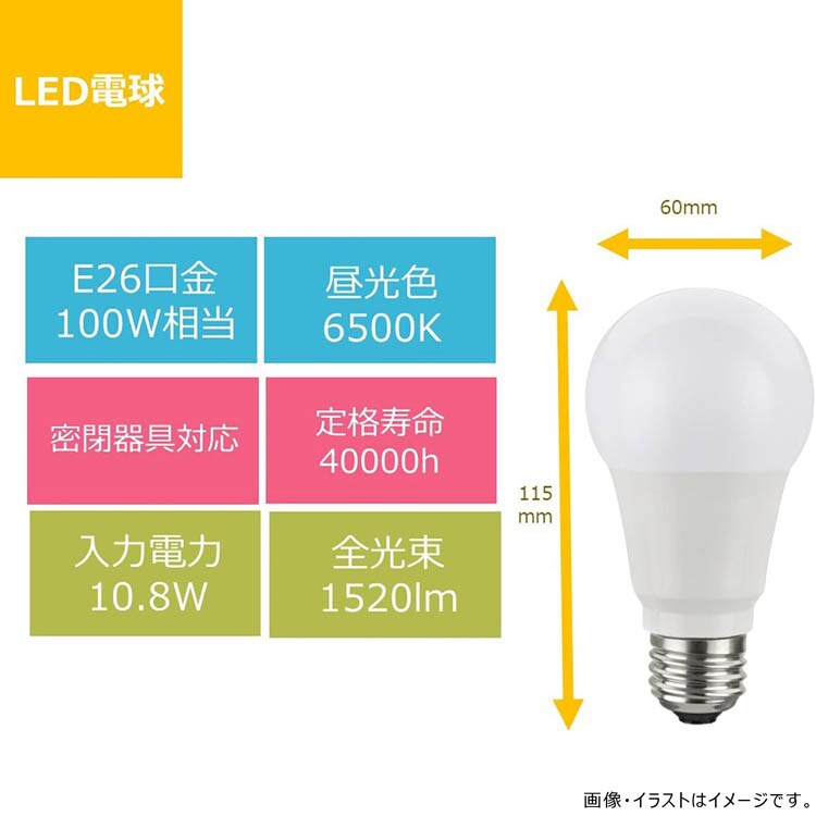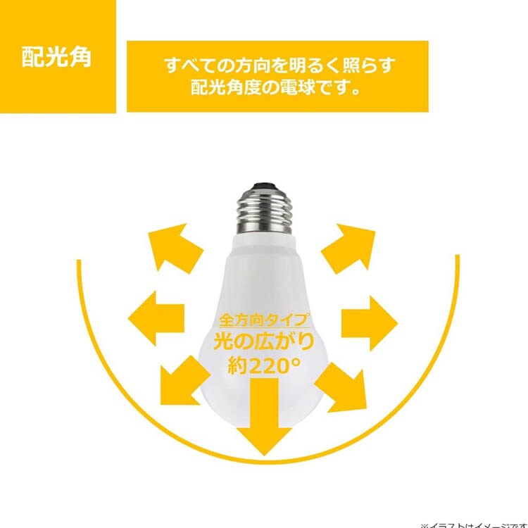 | ・メーカー5年保証 ・定格寿命40000時間 ・密閉器具対応 ・メーカー名 NVC Lighting Japan ・口金 E26 ・配光角度 全方光(220度) ・光源色 昼光色(D) ・調光器対応 不可 ・明るさ 60W相当 |